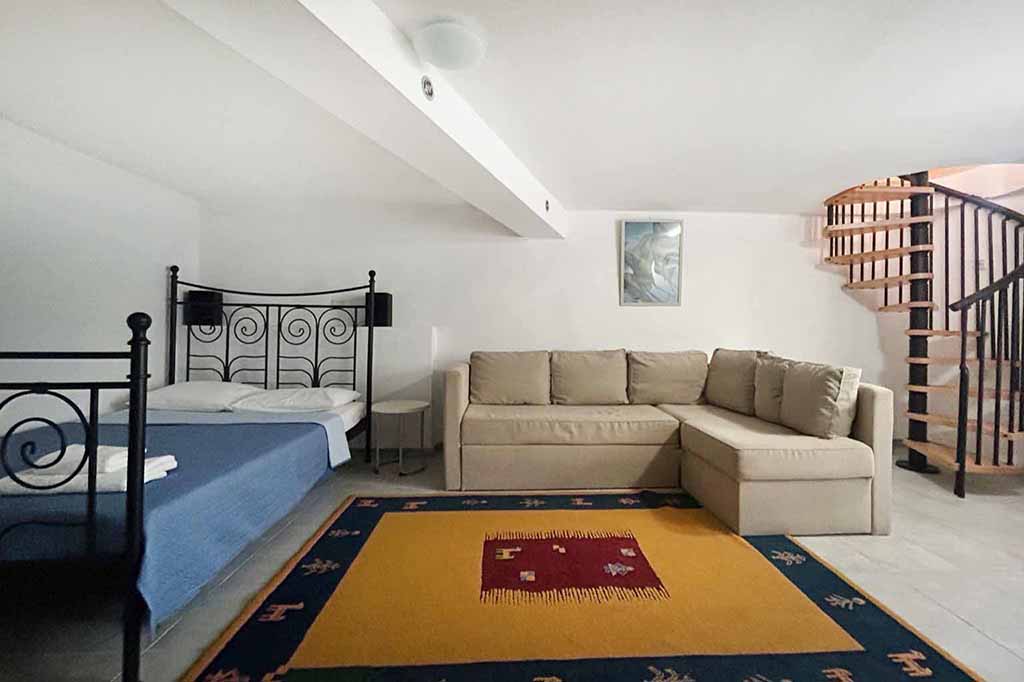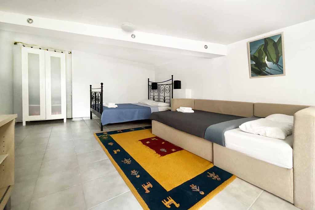 1st bedroom with one double bed and one sofa double bed